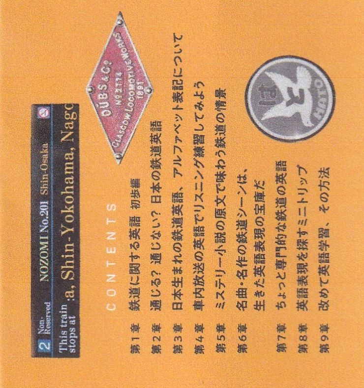| 2.通じる? 通じない? 日本の鉄道英語 | グリーン車、ロマンスカー、ロングシート&クロスシート、上り列車&下り列車、内回り&外回り、運転士と車掌、地下鉄、路面電車、 鉄道ファン&鉄道マニア | |