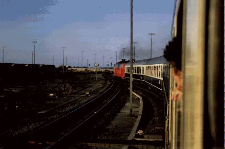 ![]() ハンブルク中央駅で、ハンネスは北欧に向かう列車に乗り換える。 218型ディーゼル機関車に牽引された 列車の出発シーンが出てくるが、画面に現れるホームに停車中の客車のサボ(行き先表示板)から 列車の名前はEuroCity 「アルフレッド・ノーベル号」だと分かる。この列車は今では廃止されて いるが、夜行列車で、スウェーデンのストックホルム行きとノルウェーのオスロ行きの併結列車であった。 ハンブルク中央駅からは、いわゆる「渡り鳥コース」を通って、まず、デンマークの首都コペンハーゲン を目指す。途中のバルト海は、客車をフェリーに載せて乗客はそのまま海を渡るのである。 客車がフェリーに積み込まれるシーンは映画に収められているが、何の解説もないので、知らない人には 分からないであろう。区間はドイツのプットガルデンとデンマークのロービュである。コペンハーゲンを 出た後、ヘルシンオアからスウェーデンのヘルシンボリまでも短い区間ながら客車はフェリーで 航送される。スウェーデン国内の停車駅アルヴェスタが画面に出てくるが、特別の意味があるとは 思えない ハンネスが乗ったと思われる1994年夏の時刻は以下の通り。 290列車 ハンブルク中央駅 19:34発 → ストックホルム中央駅 9:53着 オスロ方面は、ヨーテボリ止まりで、6:30着。 15分の待ち合わせで、オスロ行きに接続している。しかし、「ノーベル号」は、 翌1995年には、時刻表から姿を消している。 写真は、フェリーから出て、ハンブルクに向かう「ノーベル号」 (PUTTGARDENにて) 「アルフレッド・ノーベル号」の写真は、拙著「北欧=鉄道旅物語」 p4〜p6、フェリーの客車航送については、同書p26〜p34参照。 「渡り鳥コース」については、「ヨーロッパ鉄道と音楽の旅」p55〜p57参照 |